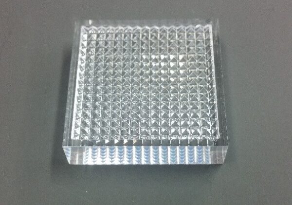今回のサンプルも、レンズカット形状を切削のみで仕上げています。